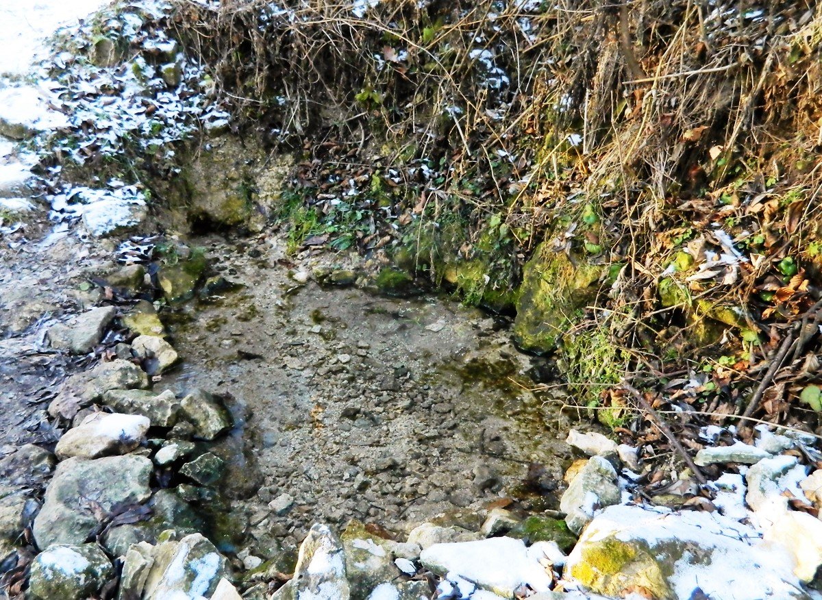 Для удобства набора воды из открытой каптажной камеры вода сливается через небольшую трубу и коротким ручьём стекает в реку Северку.