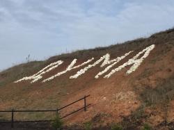 Близ источника на борту оврага, камнями выложено слово - ДУМА (видно на спутниковых фото).