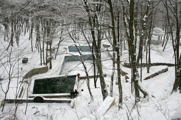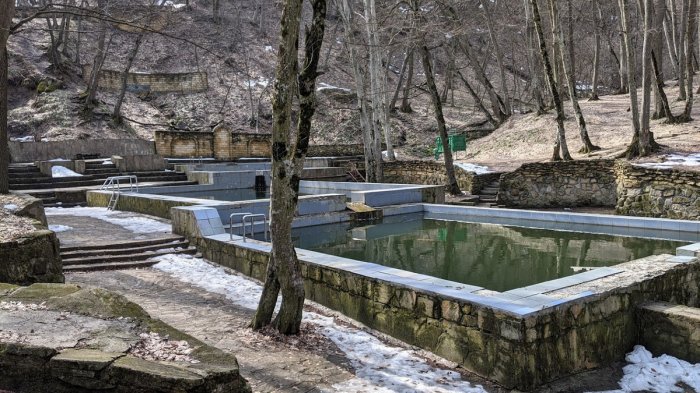 Автор: Aleksey Дата: 17 октября 2021 г. В советское время, в восьмидесятые годы прошлого века, здесь сделали экологическую тропу в Таманском лесу к родникам. Около источников установили беседку, были построены бассейны, спортивные площадки, и места для культурного отдыха горожан вокруг. Со временем бассейны разрушились, вода из них ушла, да и зона отдыха перестала быть местом культурного отдыха. Большой каскад бассейнов наполняли примерно десять родников. Но со временем пласты породы сместились, и родники поменяли свои выходы. Много лет чаши бассейнов были наполнены мусором и двухметровым слоем ила и земли.