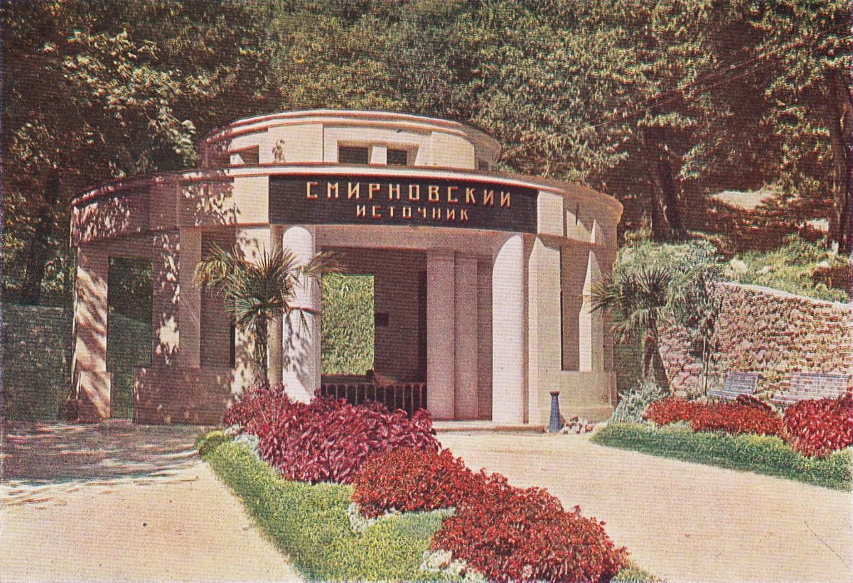 В 1924 г. Смирновский источник был каптирован заново буровой скважиной, и в 1926 — 1927 гг. над ним был сооружен новый большой бювет. Открытый каменный павильон в конструктивистском стиле был выполнен по проекту архитектора П.П. Еськова в виде высокой колонной ротонды с утрированными капителями, окруженной на три четверти низкой колоннадой и квадратными столбами. Этот оригинальный бювет стал настоящим украшением курорта.