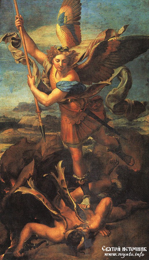 Он первый восстал против люцифера (сатаны), когда сей восстал против Вседержителя. Известно, чем закончилась эта война, низвержением денницы (сатаны) с неба. С тех пор Архангел Михаил не перестает ратоборствовать за славу Творца и Господа всяческих, за дело спасения рода человеческого, за церковь и чад её.