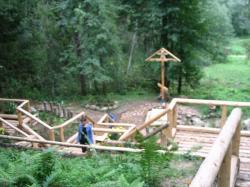 Ниже родника, по месту стока, видны отложения диоксида железа. Отчетливо прослеживается запах сероводорода.