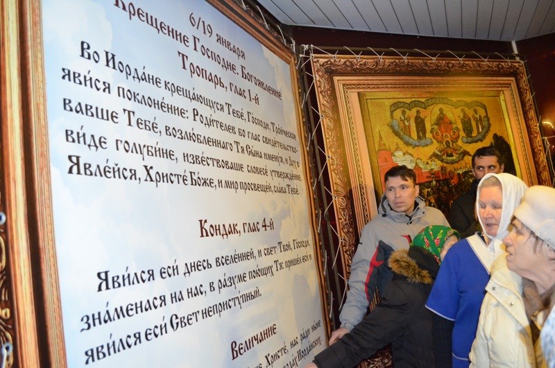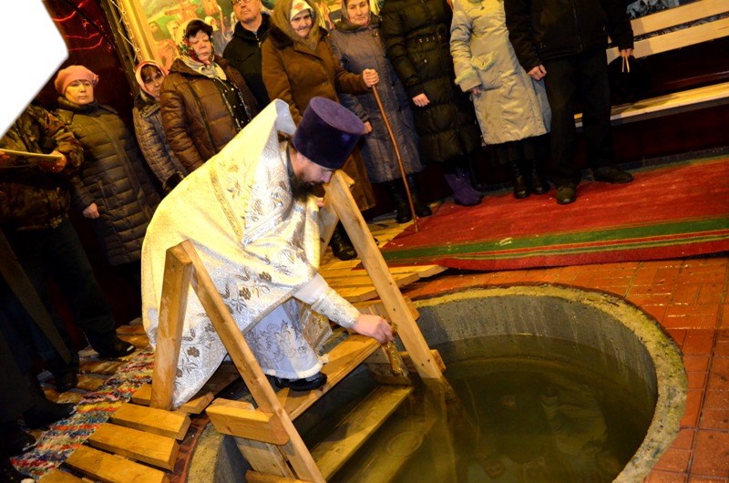 После Божественной Литургии, настоятель храма, протоиерей Александр Ермолаев, совершил чин Великого освящения воды, окропил храм и молящихся святой водой. Множество желающих, в эти праздничные дни, окунулись в освященную Крещенскую воду купели.