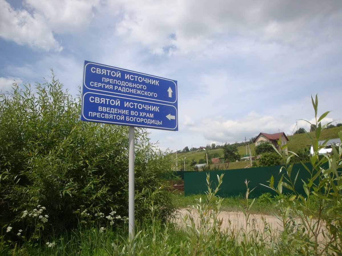 Родник выбивается у основания холма, противоположного от сохранившегося храма, к 400 м к юго-западу от Сергиевской церкви. На горе до середины ХХ века стояла Введенская церковь.