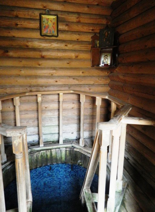 Святой источник обустроен, каптирован, слив воды из крытого колодца по трубе. Вода чистая, прозрачная, без запаха, приятная на вкус, дебет родника средний.