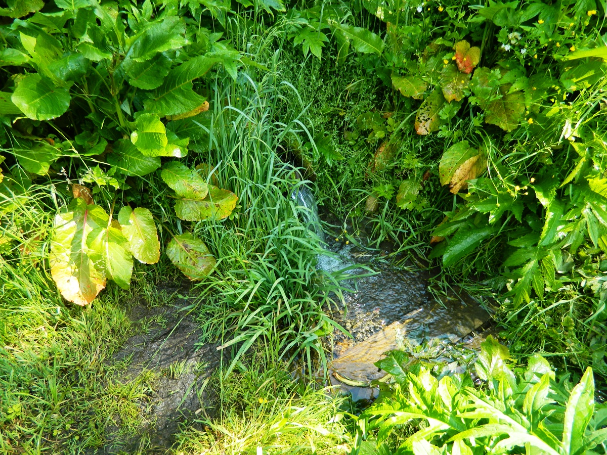 Проход к роднику по тропе за домом № 8. Крутой спуск по земляной лестнице и далее по тропе вверх (на запад) по ручью, сырой поймой. От деревенской улицы до родника 220 метров. Есть более пологий, но продолжительный путь, начинающийся у дома №3, но по нему идти 270 м по еле заметной в траве тропе.
