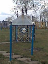 Территория огорожена, установлены деревянный павильон, беседка, дорожки замощены, малые архитектурные формы выложены из природного камня.