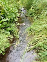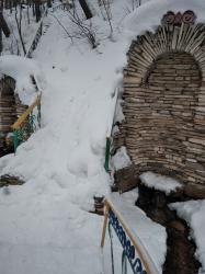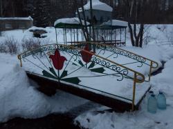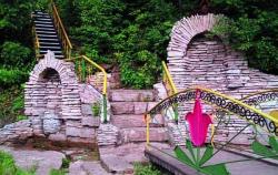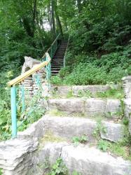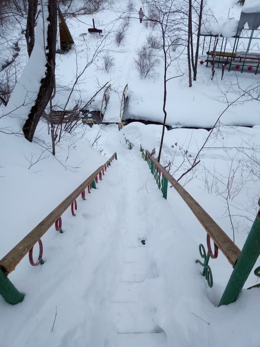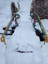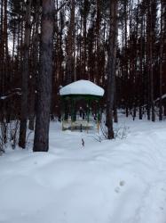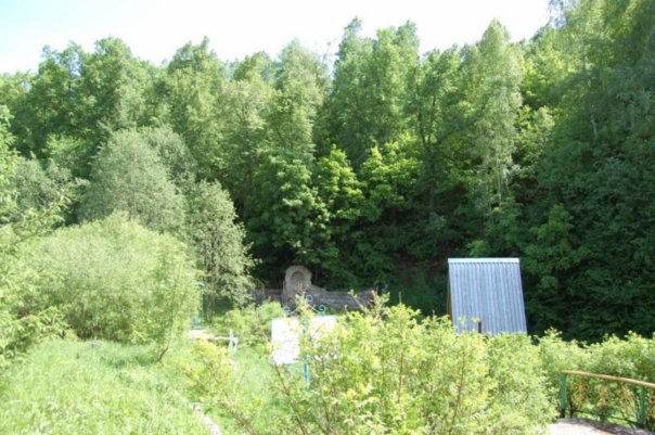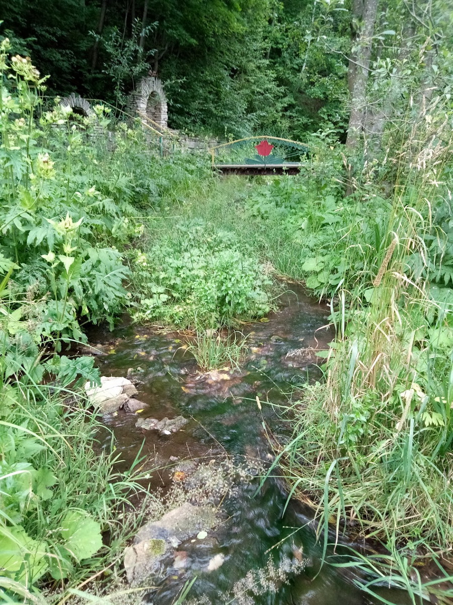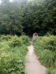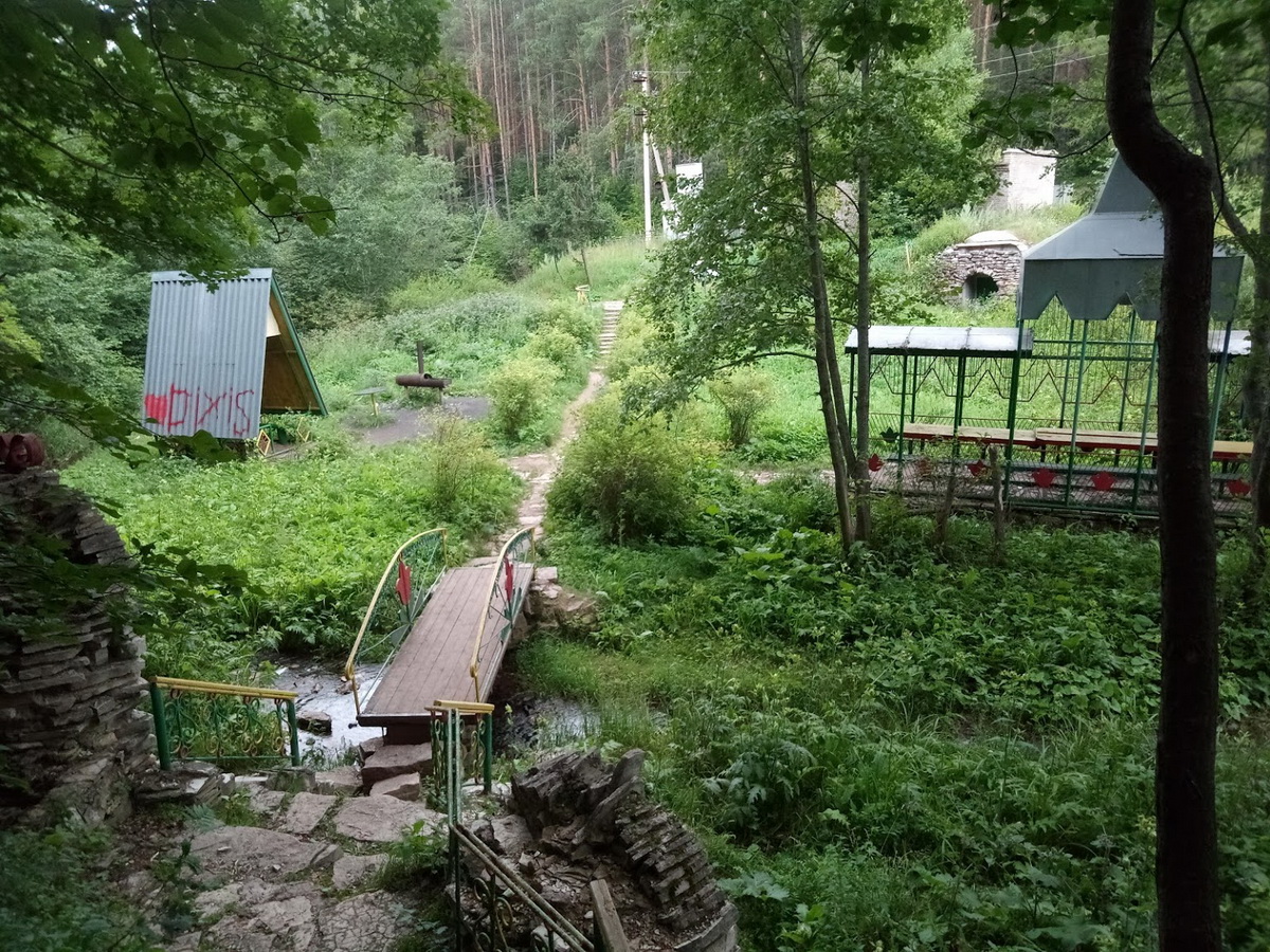 Территория благоустроена, огорожена, спуски оборудованы лестницами, дорожки замощены, установлены беседки для отдыха, через речку перекинут мостик.