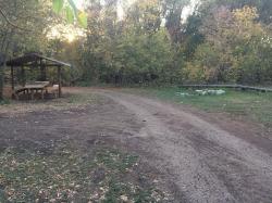 Поблизости построена беседка со столом и лавочками, обустроено место для костра.