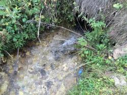 Четыре концентрированных выхода подземных вод собираются в один ручей. Общий дебет 12 л/с. Родник не обустроен. Вода чистая, прозрачная, жесткая, сухой остаток 960 мг/л, pH 6,5.