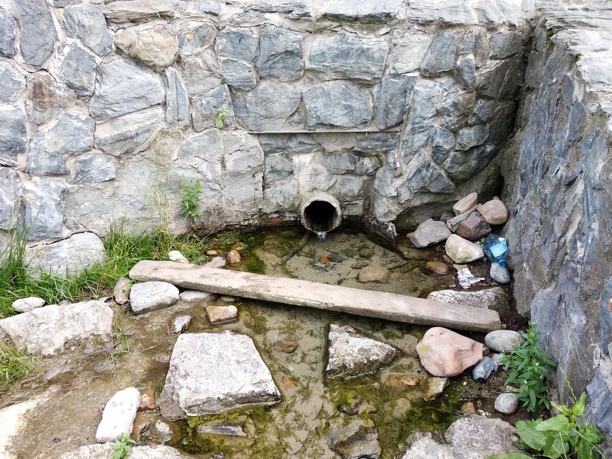 Источник обустроен, каптирован, слив воды из бетонного крытого колодца по металлической трубе, над колодцем установлен металлический шатровый навес. Вода чистая, прозрачная, средней жесткости, сухой остаток (содержание солей ppm) 850-1050 мг/л, содержание нитритов NO2 мг/л 0, и нитратов NO3 5.6-18.4 мг/л, Овп (Eh) 200 мв, водородный показатель (pH) 7.25-7.35, температура (t) летом +8°C, зимой + 4°C, дебет средний 1-1.1 л/с.