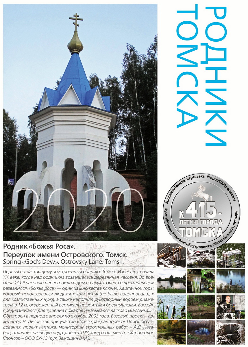 Обустроен в период с апреля по октябрь 2003 года, построена 14 метровая часовня. Базовый проект-архитектор Н. Лисовская при участии «Томскгражданпроект». Поиск, исследования, проект каптажа, мониторинг строительных работ - АД. Назаров, отличник разведки недр, доцент ТПУ, канд.геол.-мин.н., гидрогеолог. Спонсор - ООО СУ-13 (рук. Замощин В.М.).