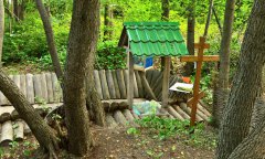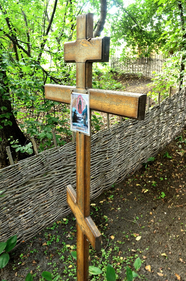 Над почитаемым источником установлен красивый деревянный поклонный крест.