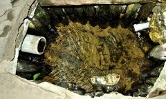 Дорожки выложены камнем, ключ заключен в деревянный сруб и подходы к нему вымощены досками.