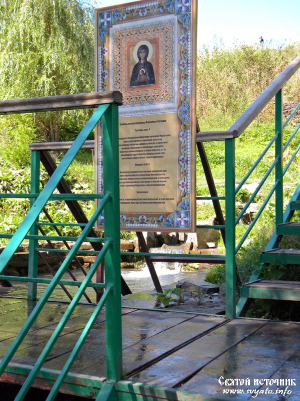 У источника сооружена "открытая" купель, а также есть специально отведенные в сторону 2 водные струи, где можно, во весь рост встать под них.