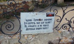 Автор: Виктор Дата: 2 июля 2019 г. Над входом установлена арка, на ней закреплены результаты анализа родниковой воды и аншлаг в с названием родника.
